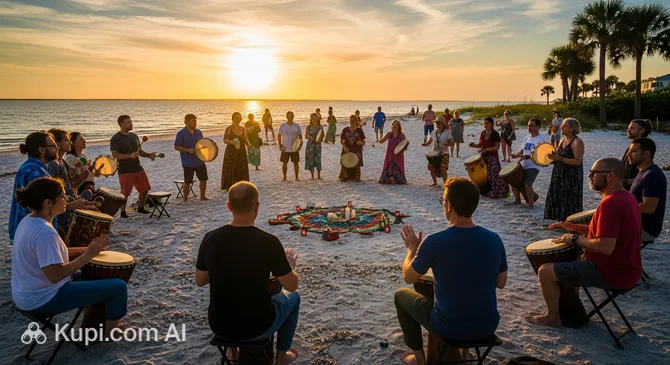 On the snow-white coast that graces the state of Florida in the USA, there is an amazing place where music and nature merge into a single rhythm. The Nokomis Drum Circle is a weekly cultural event held right on the beach at Casey Key Road. It is not just a concert, but an open community where anyone can become part of an improvised open-air orchestra.