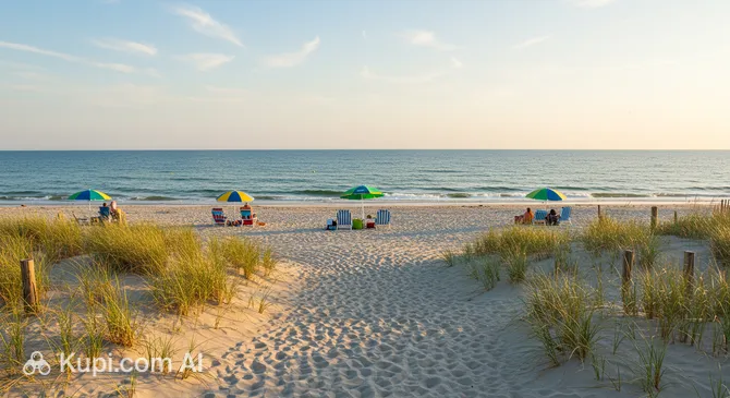 On the southern outskirts of the vibrant city of Virginia Beach in the USA lies Sandbridge Beach—a true oasis of tranquility and pristine beauty. This location is strikingly different from the central tourist areas: instead of bustling promenades and high-rise hotels, you'll find untouched sand dunes and the vast expanses of the Atlantic Ocean.
