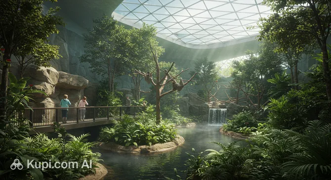 The pavilion features a complex multi-level environment where mammals, birds, and reptiles live in conditions that closely mimic their natural habitats. Strolling along the paths, visitors can encounter animals moving freely among the foliage, creating a sense of complete unity with the wild.
