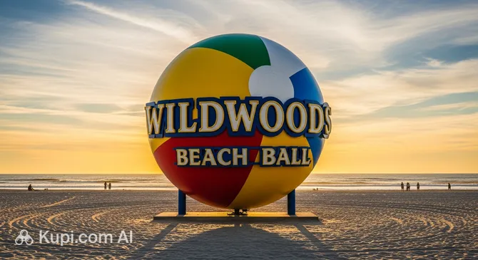 A bright and cheerful installation greets guests on the Atlantic coast, serving as the first harbinger of a great vacation. The Wildwoods sign with beach balls is an iconic landmark in the city of Wildwood, located in the USA. The sculpture is a composition of enormous multicolored spheres symbolizing joy, summer, and a carefree holiday.