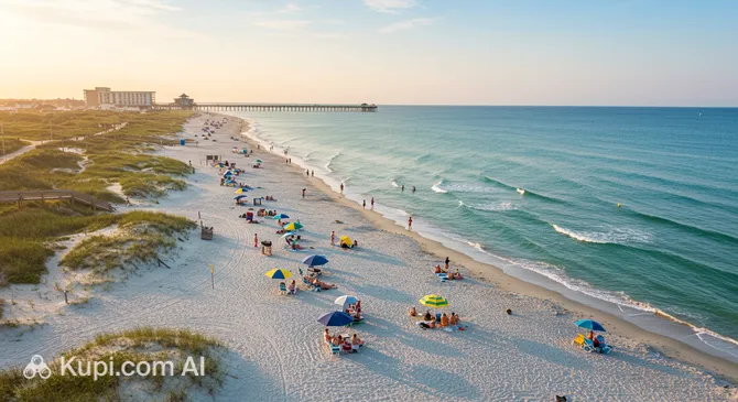 Located just down the coast in South Carolina, Myrtle Beach is a vibrant resort city famous for its extensive boardwalk and family-friendly attractions. It offers a lively contrast to Wilmington, featuring the iconic SkyWheel, numerous celebrity-designed golf courses, and a bustling nightlife scene that attracts visitors year-round.