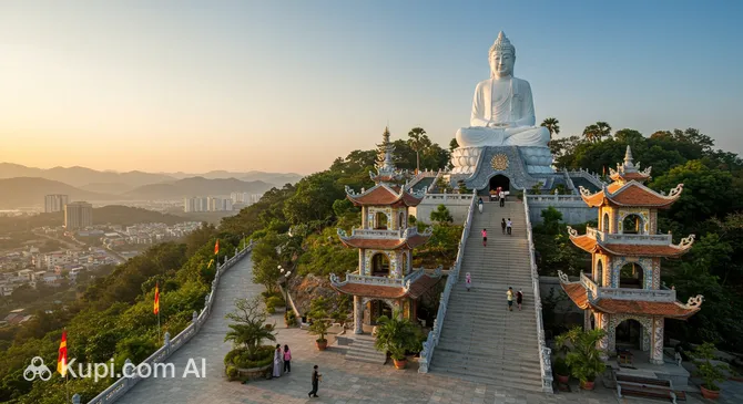 One of the most significant religious sites in the region is the Long Son Pagoda. Located at the foot of Trai Thuy Mountain, this temple is renowned for its intricate dragon mosaics and serene atmosphere. The main highlight, however, requires a climb of over 150 steps: a massive white Gautama Buddha statue seated on a lotus throne. Visitors who make the ascent are rewarded not only with a close-up view of this majestic figure but also with panoramic vistas of the city and the sea beyond.