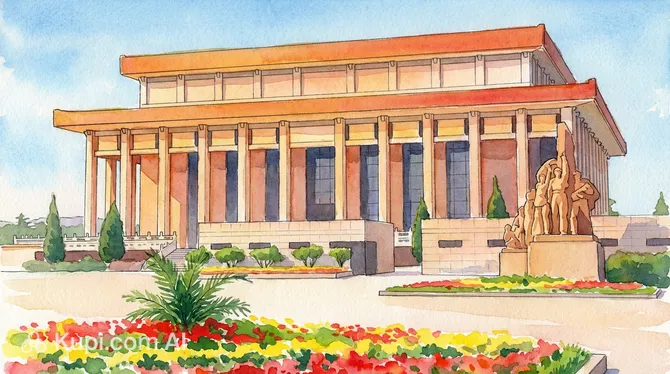 The architectural style of the mausoleum is a unique blend of Soviet monumentalism and traditional Chinese elements. The building is surrounded by 44 massive granite columns, and the facades are decorated with dozens of sculptures depicting scenes from the lives of workers, peasants, and soldiers of the revolutionary era. The vast area of the complex, exceeding 57,000 square meters, underscores its national significance.