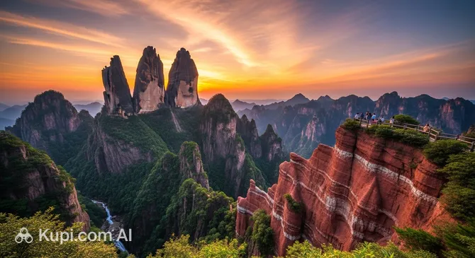 Jianglang Mountain is famous for its "Three Peaks," which, according to legend, are three brothers who turned to stone.
