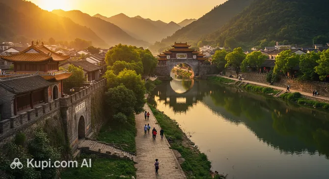 For those who want to see the city from above, a visit to the Wangyun Pavilion is a must. Perched on a hilltop, it serves as an ideal viewpoint, offering panoramic views of the old city's tiled roofs and the curves of the river. Nearby are a majestic Qing-era pagoda and an ancient stone bridge, reminders of the former glory of this trading center.