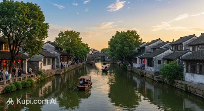 City of Black Boats: The hallmark of the city is the "wupengchuan" — small flat-bottomed boats with characteristic black awnings, operated by an oar held between the feet.