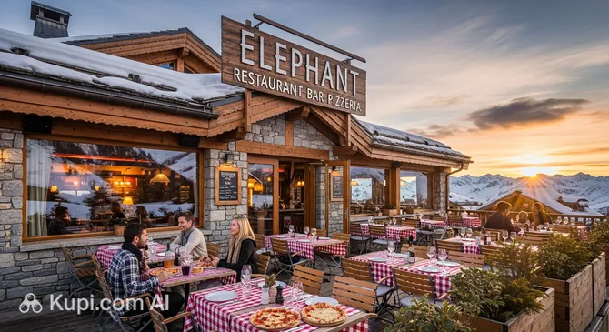 In the picturesque Le Praz area of the Courchevel ski resort, you'll find Elephant Restaurant Bar Pizzeria—a place where Alpine coziness meets vibrant energy. This popular spot in France harmoniously combines the features of a classic restaurant, a lively bar, and a traditional pizzeria.