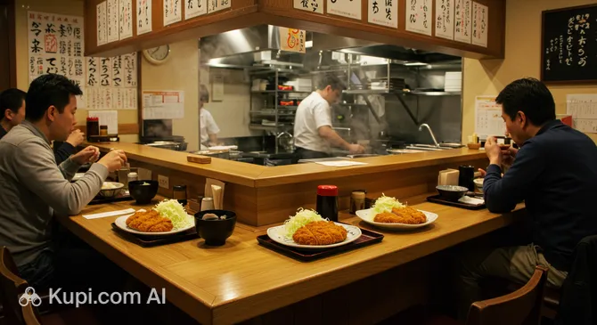 Gyukatsu Motomura Shinjuku South Exit. Illustration.