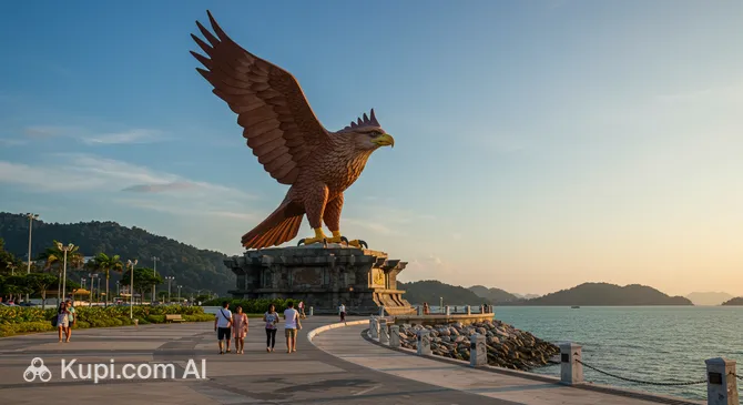 Eagle Square (Dataran Lang) is the most iconic and recognizable landmark of Langkawi, located in the town of Kuah. The center-piece of this grand space is a magnificent 12-meter-tall statue of an eagle with its wings spread wide. The bird, finished in reddish-brown tones, looks proudly out over the bay, greeting every guest arriving in Malaysia by sea.