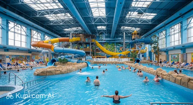 The main attraction at the Waterpark is its two modern swimming pools, where you can swim to your heart's content and enjoy water activities. It offers excellent conditions for recharging your energy or simply relaxing after a busy day.