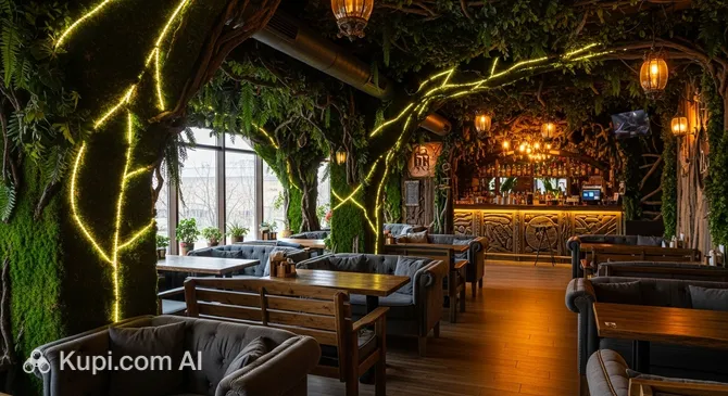 In the very heart of Syktyvkar lies an amazing place — In Forest Cafe-Bar (or simply "Forest"). This is a modern gastronomic space in Russia that stands out for its unique concept. The restaurant's interior skillfully mimics a forest atmosphere, giving visitors a sense of complete harmony with nature thanks to an abundance of greenery, stylish design, and soft lighting.