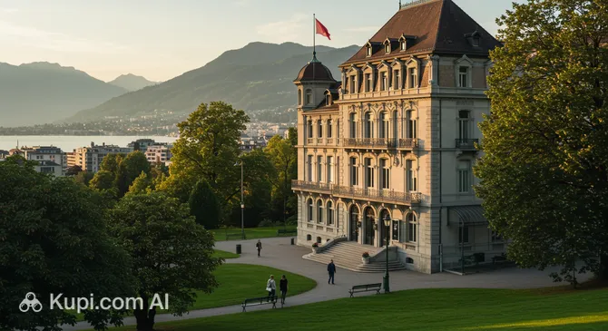 The building's silhouette is easily recognizable by its graceful rotunda and two symmetrical towers, reminiscent of the famous Trocadéro Palace in Paris. Wide staircases, huge windows, and a magnificent terrace create an atmosphere of solemnity. The highlight of this location is undoubtedly the panoramic view of the blue waters of Lake Geneva and the snow-capped Alpine peaks from the Montbenon Esplanade.