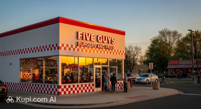 The Emporia location is famous for its juicy 100% beef burgers and unique fries, which are cooked in pure peanut oil. The establishment's high rating (4.4) confirms that both locals and passing tourists appreciate this spot for its consistent quality and friendly atmosphere. The interior is designed in a traditional fast-casual style, creating a cozy environment for a satisfying meal.