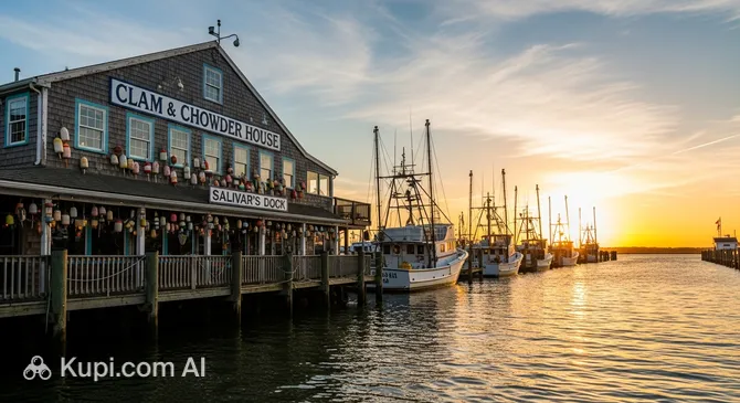 The restaurant's interior deserves special attention: it harmoniously combines modern infrastructure with historical relics. Guests can choose a seat in the dining room, on the enclosed porch, or on the upper deck, which offers breathtaking views of the harbor. The iconic red neon signs and unique maritime exhibits create a special character, reflecting the region's rich fishing heritage.